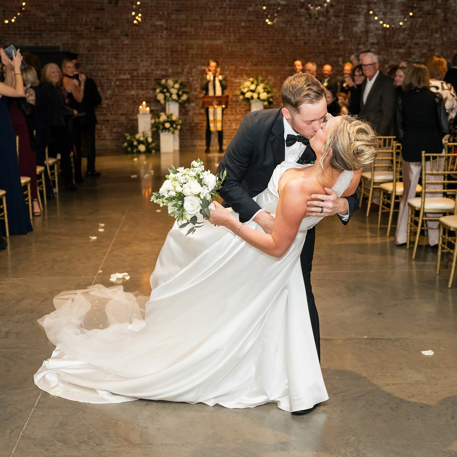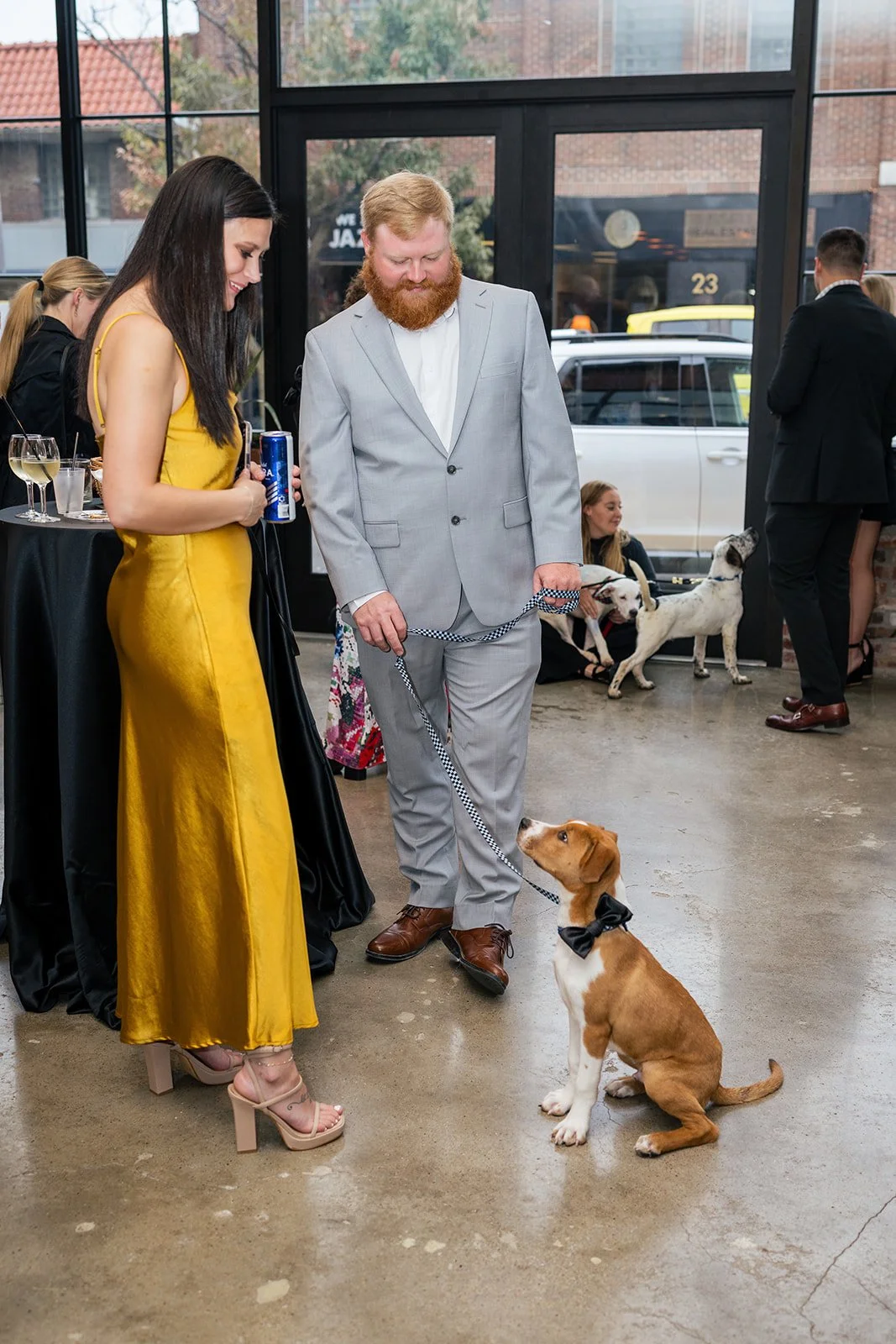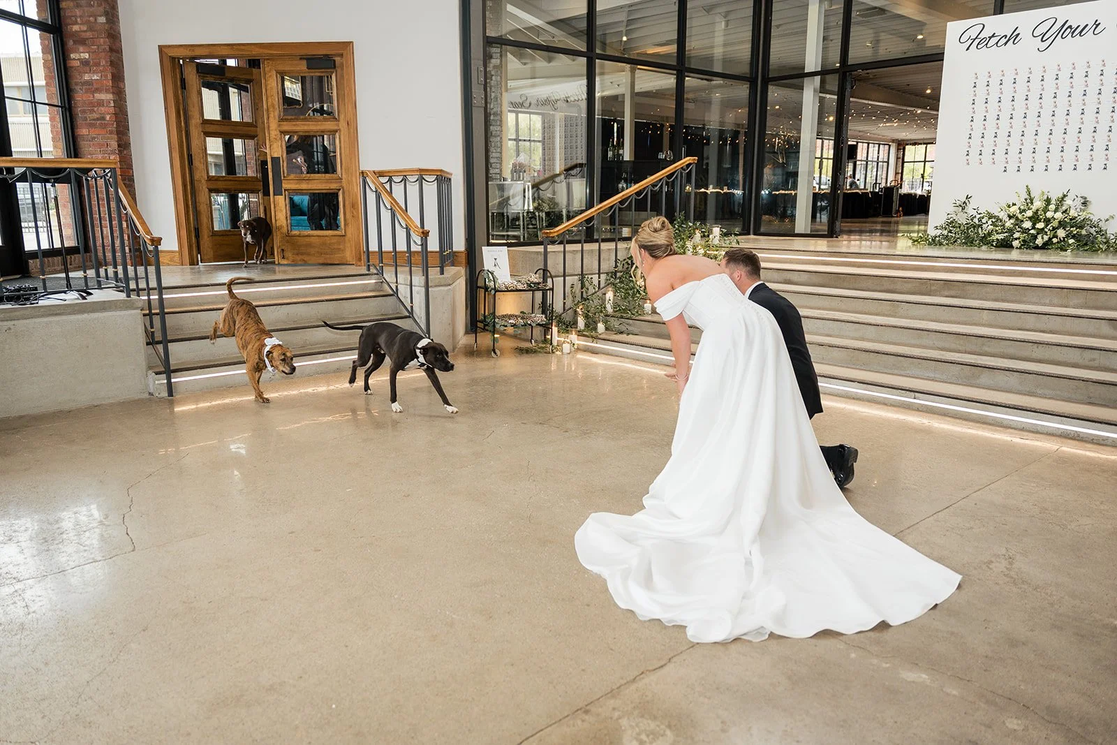 Abbey and Gunner’s wedding at The Atrium in downtown Columbia, Missouri was a beautiful reflection of who they are as a couple—thoughtful, generous, and full of heart. Known for her deep love of dogs, Abbey has dedicated time to fostering pups in need of a second chance, and together with Gunner, they found a meaningful way to weave that passion into their wedding day. During cocktail hour, guests were delighted by a surprise adoption event designed to raise awareness and celebrate rescue dogs, creating a unique and unforgettable moment that perfectly captured the couple’s spirit.