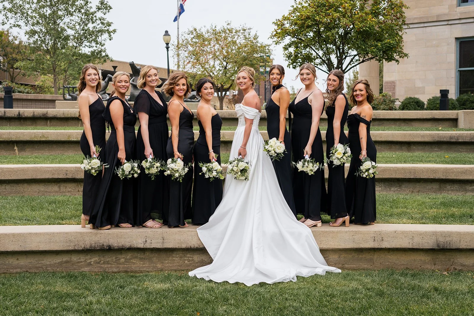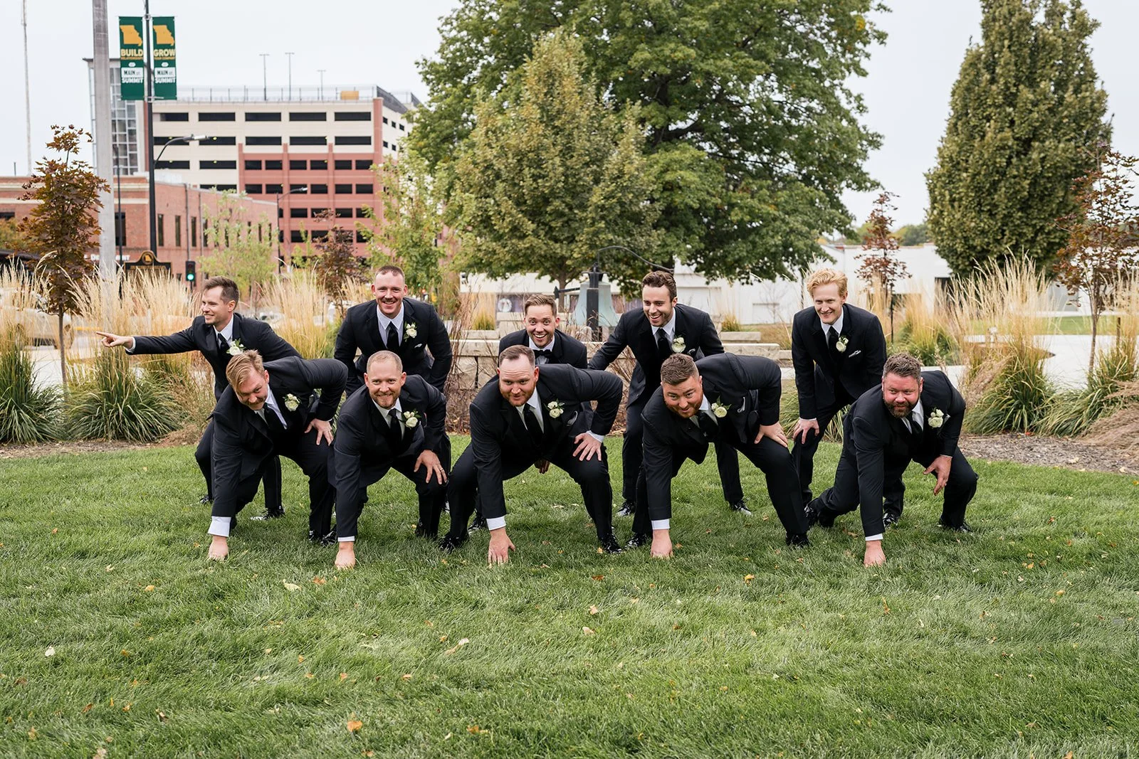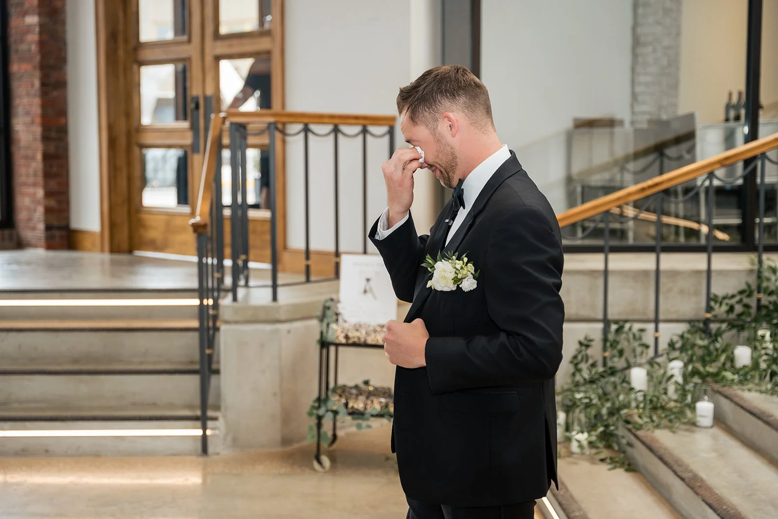Abbey and Gunner’s wedding at The Atrium in downtown Columbia, Missouri was a beautiful reflection of who they are as a couple—thoughtful, generous, and full of heart. Known for her deep love of dogs, Abbey has dedicated time to fostering pups in need of a second chance, and together with Gunner, they found a meaningful way to weave that passion into their wedding day. During cocktail hour, guests were delighted by a surprise adoption event designed to raise awareness and celebrate rescue dogs, creating a unique and unforgettable moment that perfectly captured the couple’s spirit.