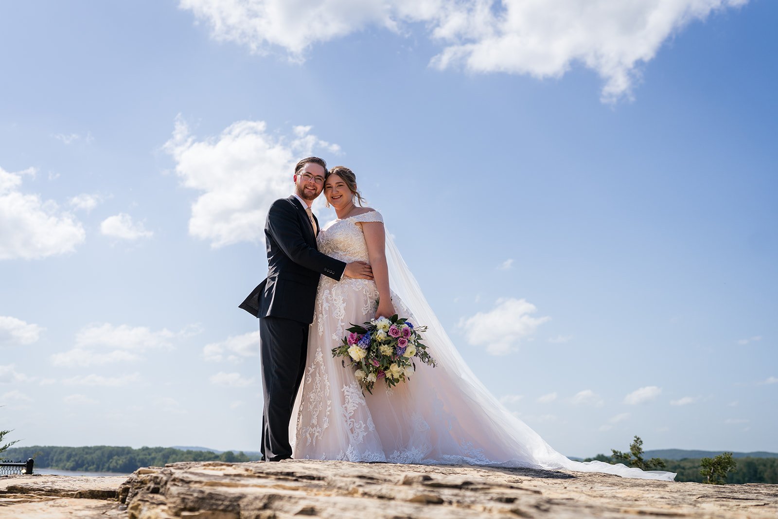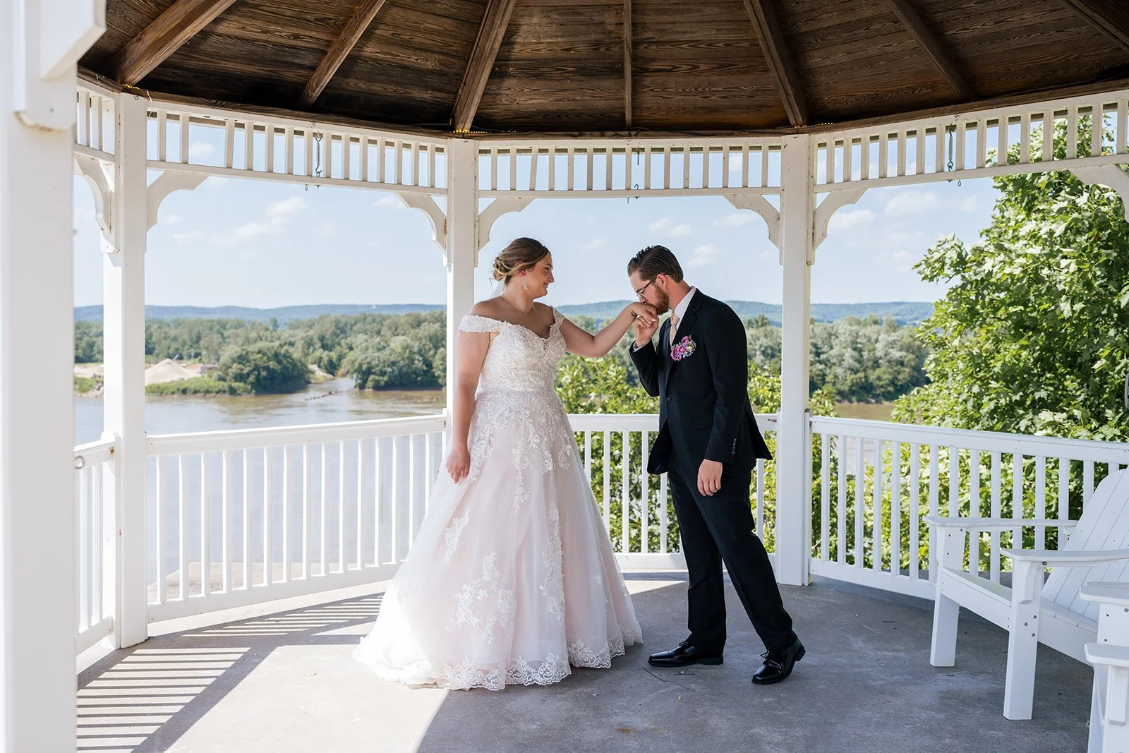 Emery and Joey’s June 21 wedding at Hermann Hill in Hermann, Missouri was nothing short of magical. Perched on the bluffs overlooking the Missouri River, the venue provided a breathtaking backdrop for a day full of love, joy, and meaningful moments. Surrounded by their closest family and friends, Emery and Joey exchanged vows in a heartfelt outdoor ceremony that perfectly captured the beauty of their relationship and the excitement of their new beginning.