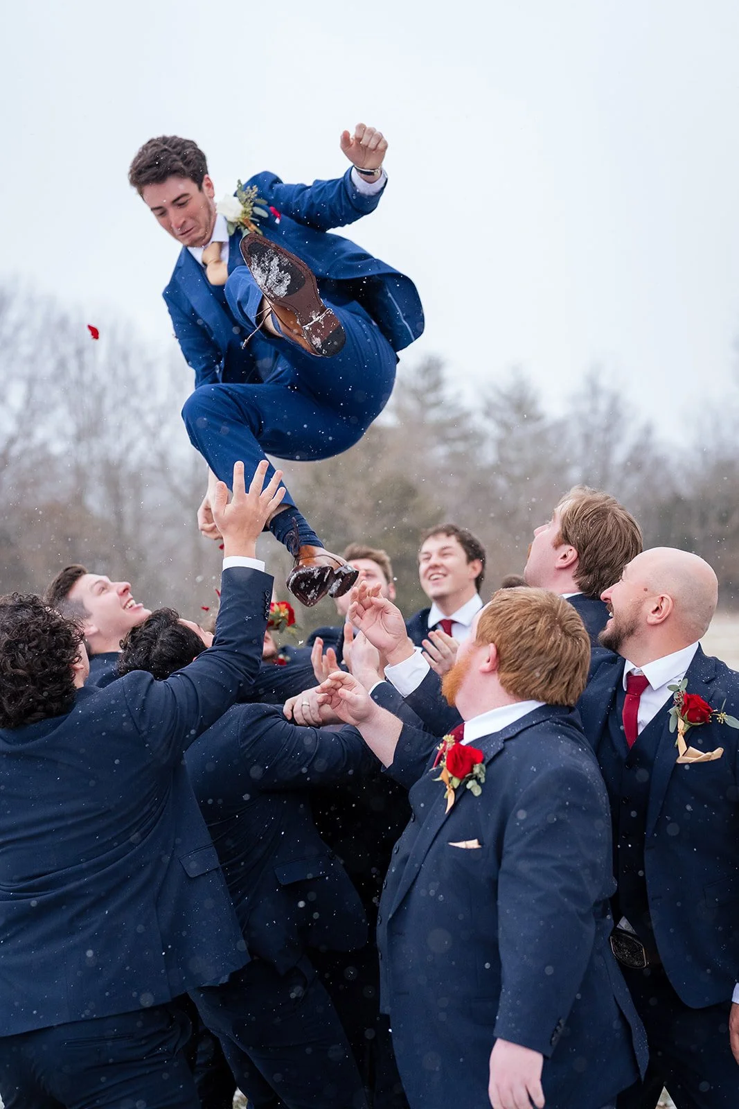 Skylar and Matthew’s wedding at Innsbrook Resort was a truly magical day, made even more unforgettable by snow gently falling, turning the venue into a winter wonderland. The moment Matthew first saw his beautiful bride walking down the aisle, he was overcome with emotion, tears of joy reflecting the depth of their love. Their connection was evident, radiating warmth and happiness to everyone present.